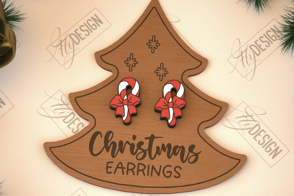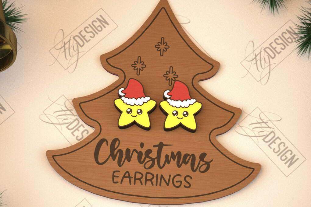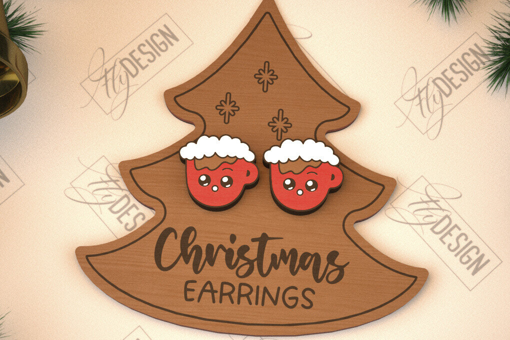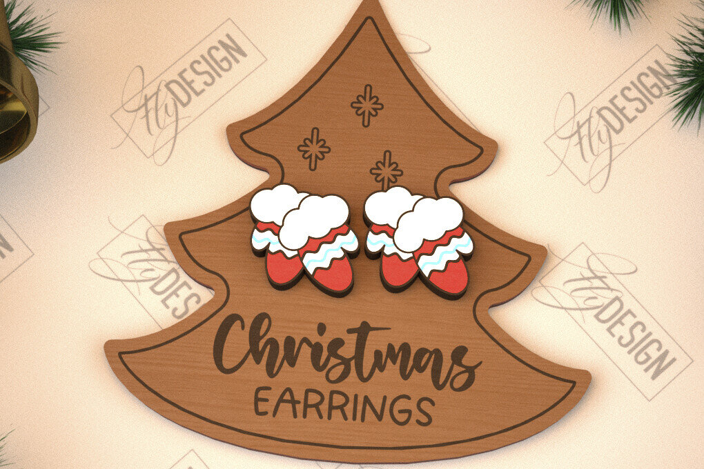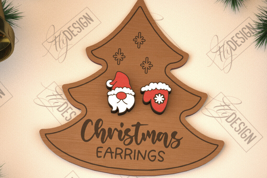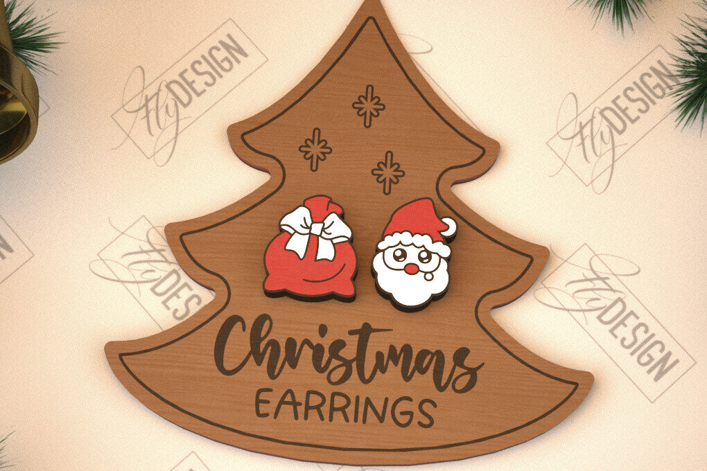 Intra απο ξύλο plywood 3mm-4mm πάχος με χριστουγεννιάτικα σκουλαρίκια | Κοσμήματα Δίασταση 3×3 cm INTRAFABR-105339957