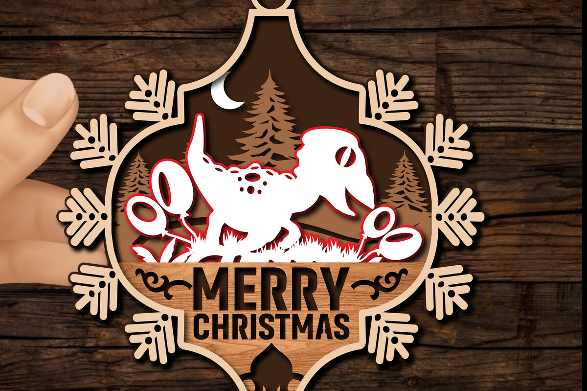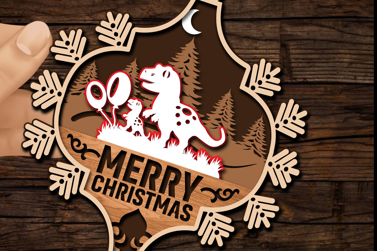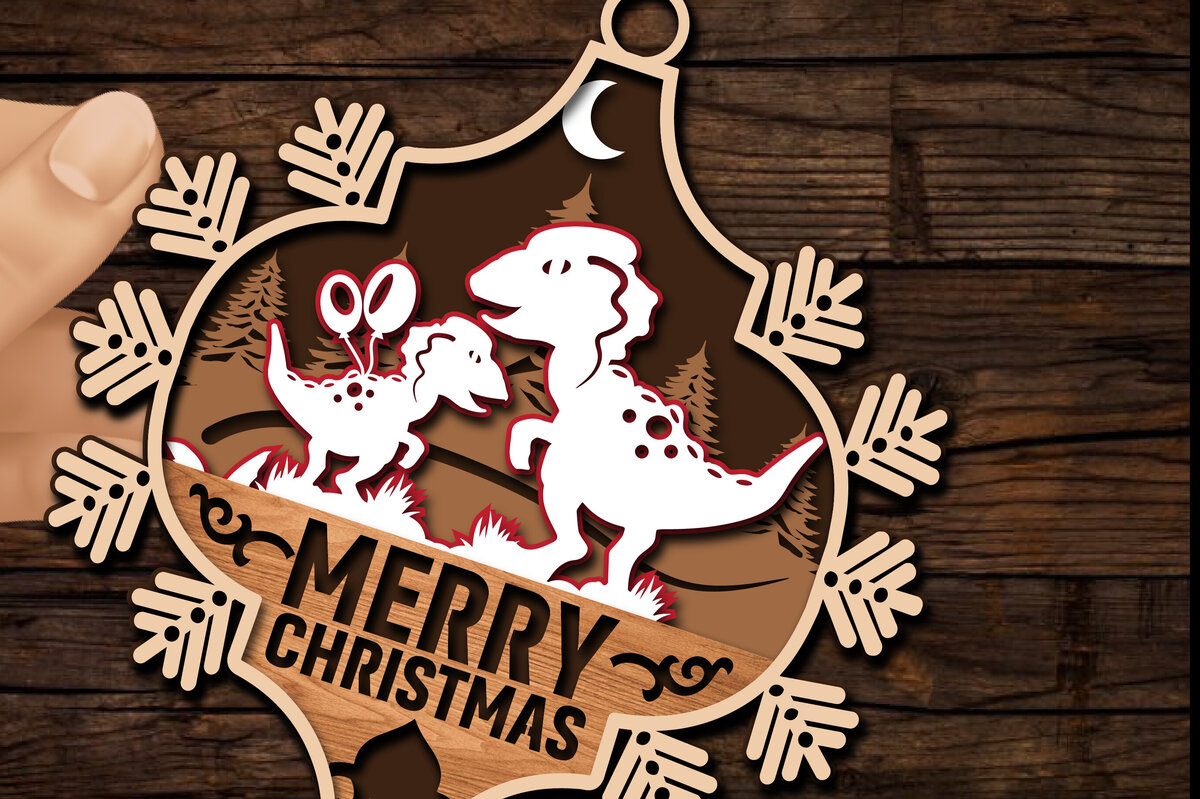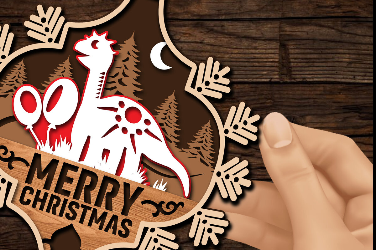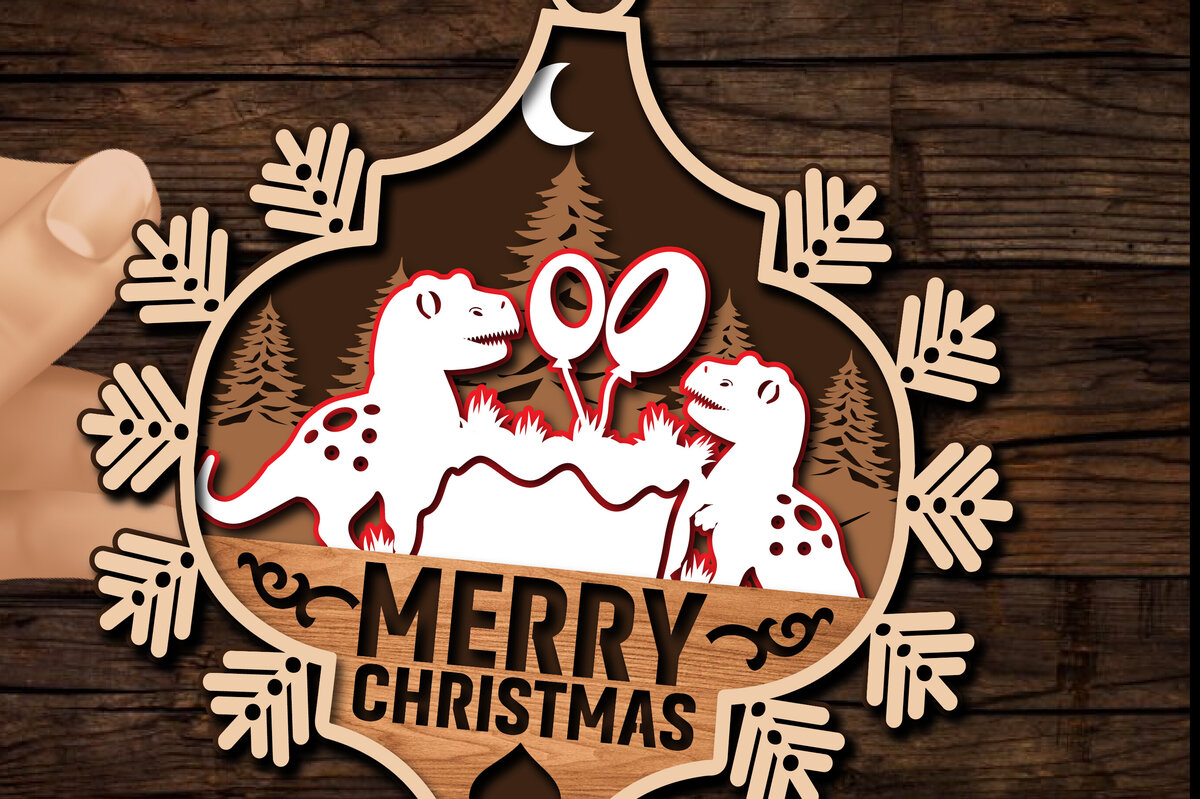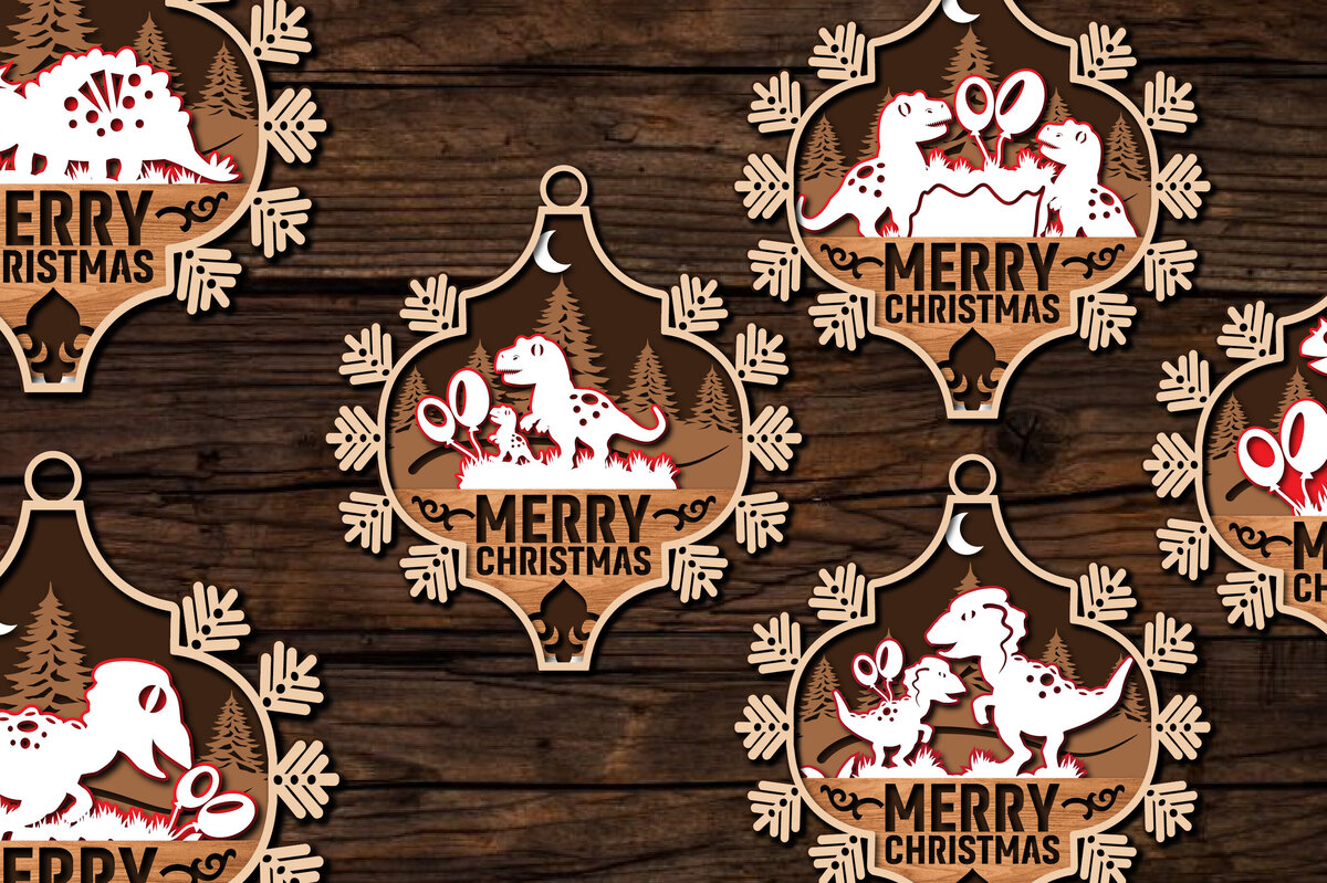 Intra απο ξύλο plywood 3mm-4mm πάχος με Χριστουγεννιάτικα στολίδια δεινοσαύρων Δίασταση 8×8 cm INTRAFABR-80602886