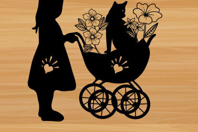 Intra απο ξύλο plywood 3mm-4mm πάχος Μικρό κορίτσι γάτας σε μέταλλο λουλουδιών ποδηλάτου Δίασταση 40×40 cm INTRAFABR-73702594