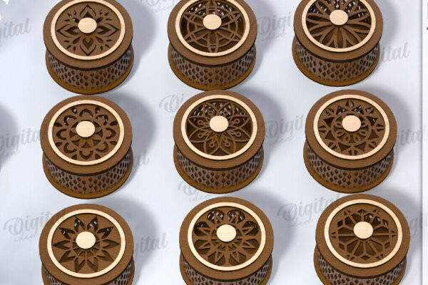 Intra απο ξύλο plywood 3mm-4mm πάχος – Μικρό στρογγυλό κουτί μπιχλιμπιδιών Δέσμη κοπής λέιζερ Δίασταση 20×20 cm INTRAFABR-118958308