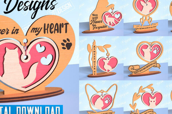 Intra απο ξύλο plywood 3mm-4mm πάχος – Μνημείο κατοικίδιων κρεμαστή δέσμη καρδιών | CNC Δίασταση 20×20 cm INTRAFABR-99262901