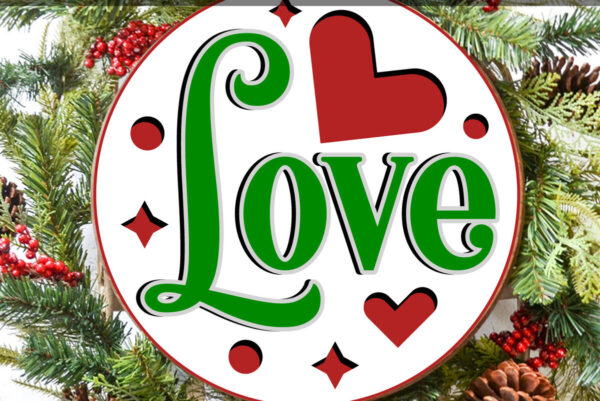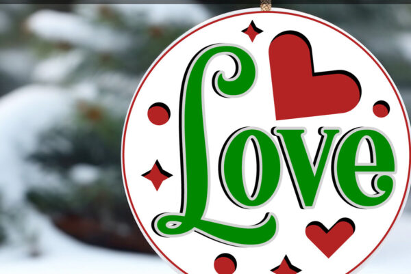 Intra απο ξύλο plywood 3mm-4mm πάχος – Μοναδική Χριστουγεννιάτικη Στρογγυλή Πινακίδα – Θέμα Αγάπης Δίασταση 20×20 cm INTRAFABR-118102101