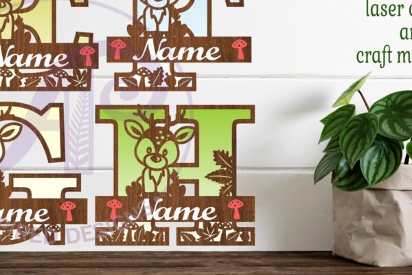 Intra απο ξύλο plywood 3mm-4mm πάχος – Μονόγραμμα ελαφιών Σημάδια ονόματος επιστολής Δίασταση 30×20 cm INTRAFABR-84536460