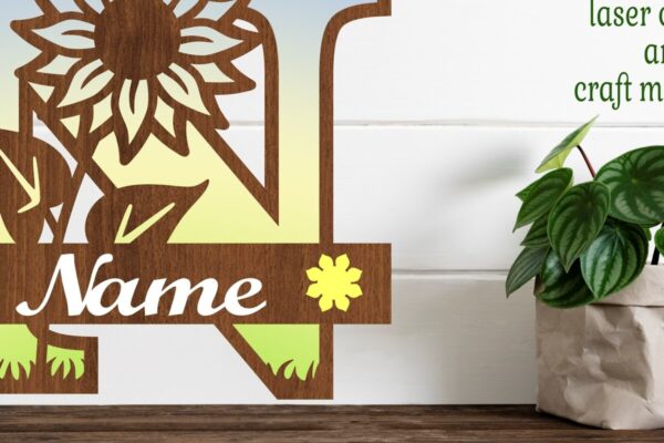 Intra απο ξύλο plywood 3mm-4mm πάχος – Μονόγραμμα Ηλίανθου κεφαλαίο Γράμμα N Δίασταση 20×20 cm INTRAFABR-75965353