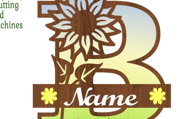 Intra απο ξύλο plywood 3mm-4mm πάχος – Μονόγραμμα ηλίανθου κεφαλαίο Γράμμα B Δίασταση 20×20 cm INTRAFABR-75965020