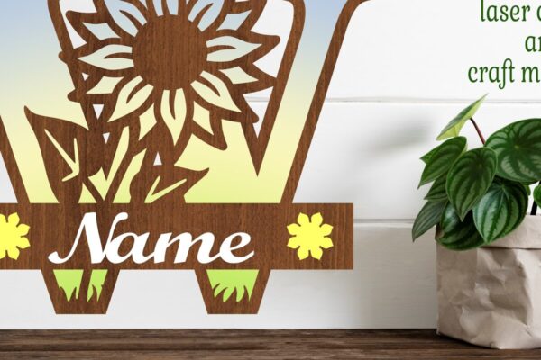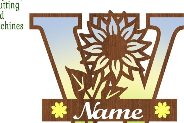 Intra απο ξύλο plywood 3mm-4mm πάχος – Μονόγραμμα Ηλίανθου κεφαλαίο Γράμμα W Δίασταση 20×20 cm INTRAFABR-75965585
