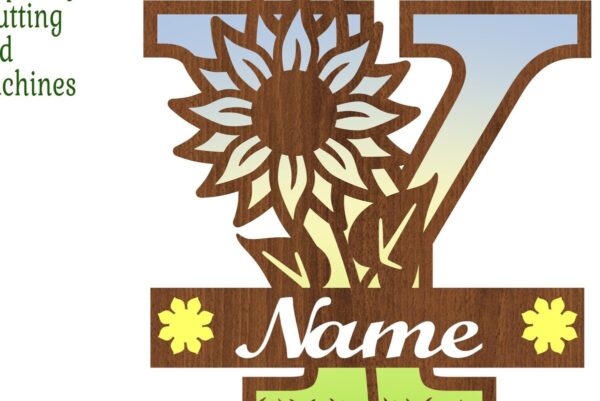 Intra απο ξύλο plywood 3mm-4mm πάχος – Μονόγραμμα ηλίανθου με κεφαλαίο γράμμα Y Δίασταση 20×20 cm INTRAFABR-75965645