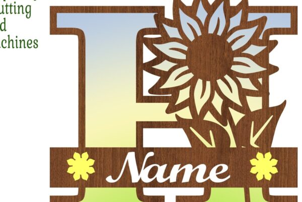 Intra απο ξύλο plywood 3mm-4mm πάχος – Μονόγραμμα Ηλίανθου με κεφαλαίο γράμμα H Δίασταση 20×20 cm INTRAFABR-75965159