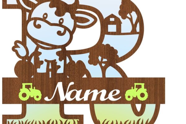 Intra απο ξύλο plywood 3mm-4mm πάχος – Μονόγραμμα κεφαλαίου αγελάδας Γράμμα R Αποκοπή Δίασταση 30×20 cm INTRAFABR-74483958
