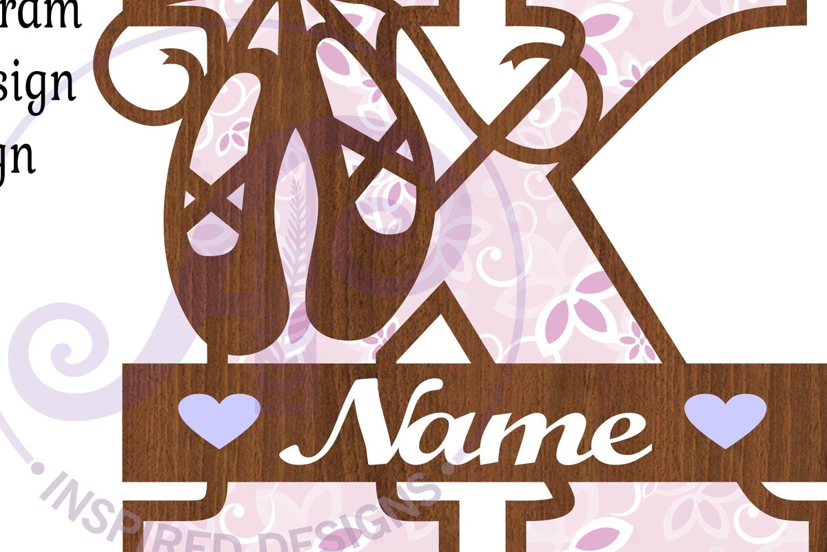 Intra απο ξύλο plywood 3mm-4mm πάχος Μονόγραμμα με κεφαλαίο παπούτσι μπαλέτου Επιστολή Κ Δίασταση 9×9 cm INTRAFABR-91015410