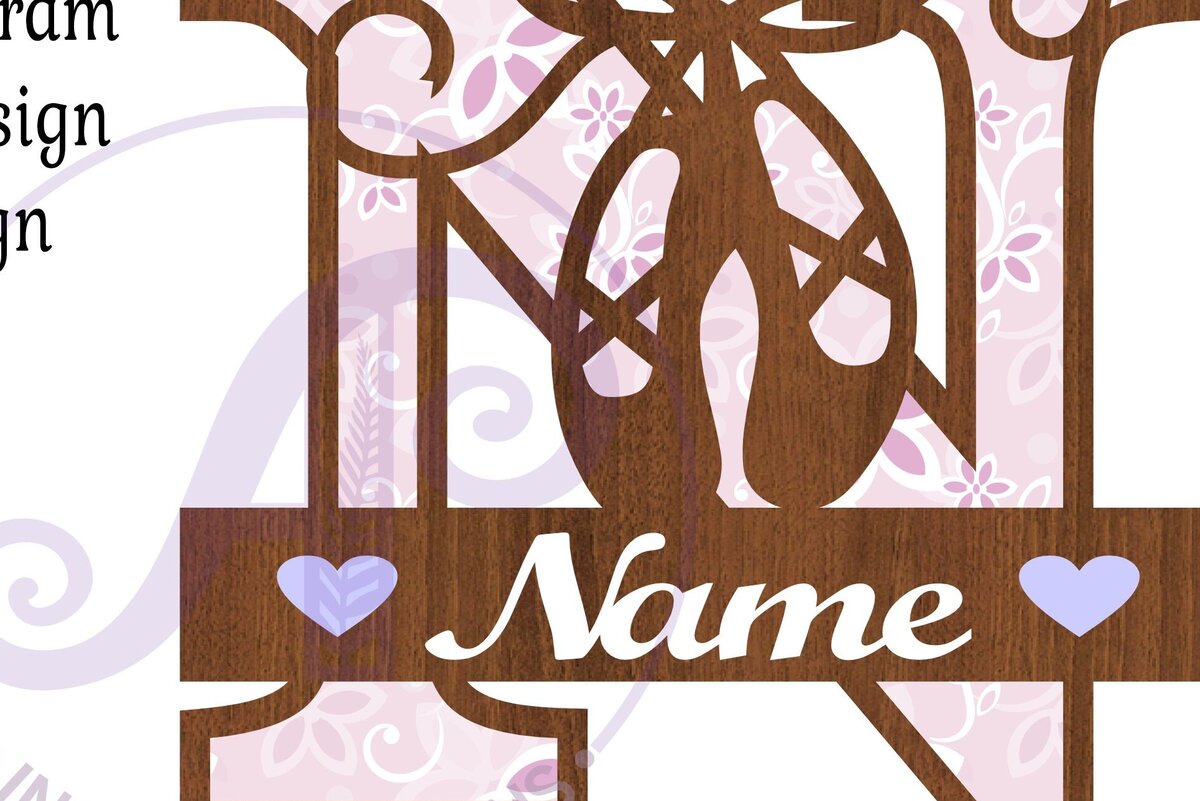 Intra απο ξύλο plywood 3mm-4mm πάχος Μονόγραμμα με κεφαλαίο παπούτσι μπαλέτου Επιστολή N Δίασταση 9×9 cm INTRAFABR-91015481