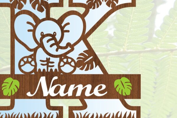 Intra απο ξύλο plywood Χρώμα wenge 3mm-4mm πάχος – Μονόγραμμα με κεφαλαίο ελέφαντα Γράμμα K Δίασταση 30×20 cm INTRAFABR-97978510