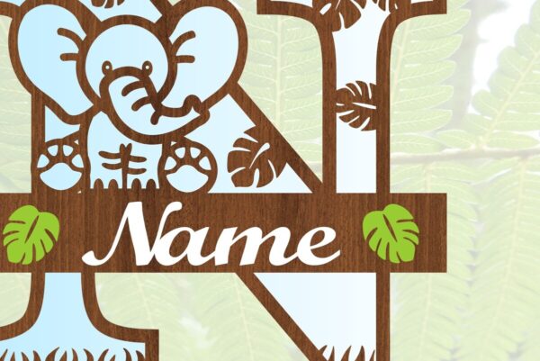 Intra απο ξύλο plywood Χρώμα wenge 3mm-4mm πάχος – Μονόγραμμα με κεφαλαίο ελέφαντα Γράμμα N Δίασταση 30×20 cm INTRAFABR-98132179
