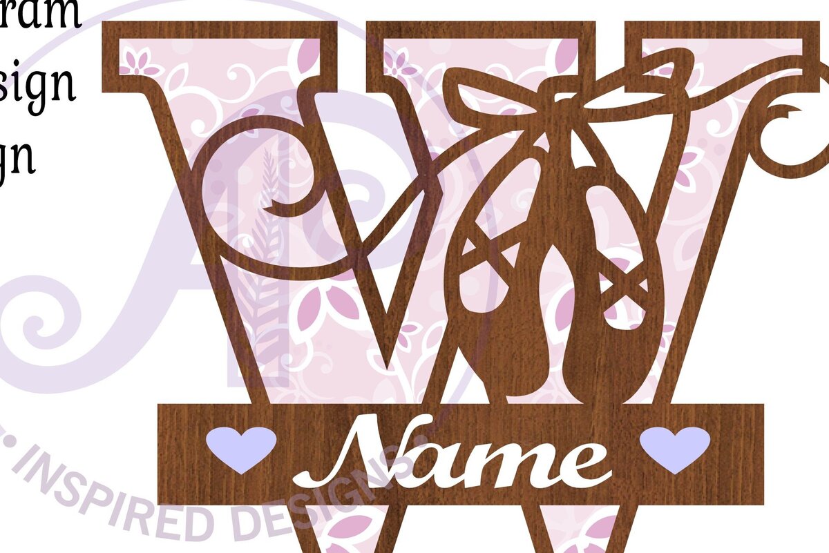 Intra απο ξύλο plywood 3mm-4mm πάχος Μονόγραμμα με κεφαλαίο παπούτσι μπαλέτου Επιστολή W Δίασταση 9×9 cm INTRAFABR-91015679