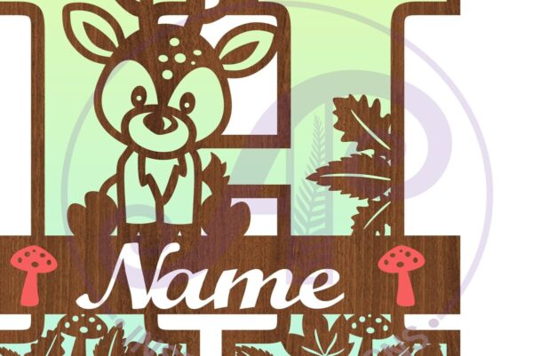 Intra απο ξύλο plywood 3mm-4mm πάχος – Μονόγραμμα με κεφαλαίο ελάφι Επιστολή H Δίασταση 30×20 cm INTRAFABR-84539575