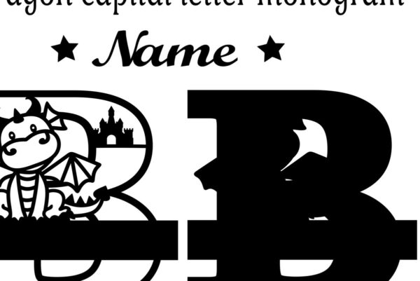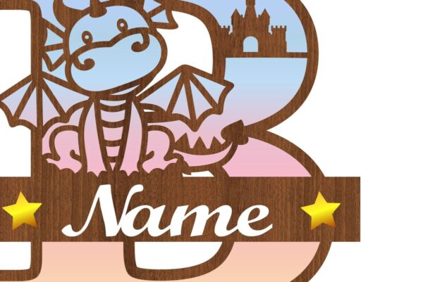 Intra απο ξύλο plywood 3mm-4mm πάχος – Μονόγραμμα με κεφαλαίο δράκο Γράμμα B Αποκοπή Δίασταση 30×20 cm INTRAFABR-75363554