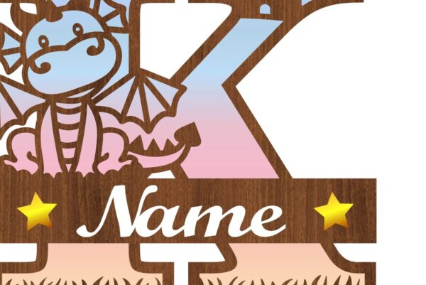 Intra απο ξύλο plywood 3mm-4mm πάχος – Μονόγραμμα με κεφαλαίο δράκο Γράμμα K Cut Δίασταση 30×20 cm INTRAFABR-75363711