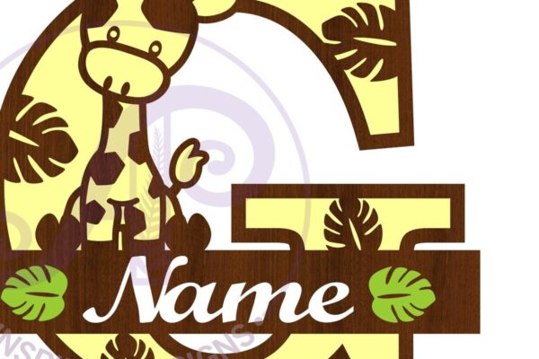 Intra απο ξύλο plywood 3mm-4mm πάχος – Μονόγραμμα με κεφαλαίο G καμηλοπάρδαλης Δίασταση 30×20 cm INTRAFABR-69376699