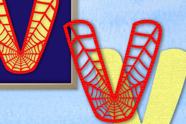 Intra απο ξύλο plywood 3mm-4mm πάχος – Μονόγραμμα Spiderweb – Γράμμα V Δίασταση 20×20 cm INTRAFABR-91981801