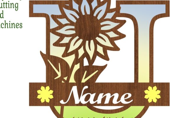 Intra απο ξύλο plywood 3mm-4mm πάχος – Μονόγραμμα Sunflower Letter U Δίασταση 20×20 cm INTRAFABR-75965540