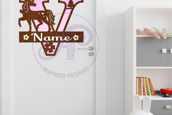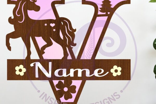 Intra απο ξύλο plywood 3mm-4mm πάχος – Μονόκερος κεφαλαίο μονόγραμμα Επιστολή V Δίασταση 20×20 cm INTRAFABR-118318967