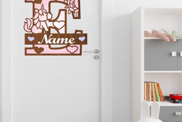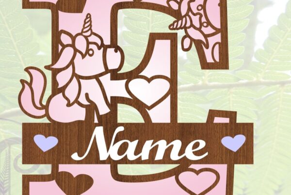 Intra απο ξύλο plywood 3mm-4mm πάχος – Μονόκερος Μονόγραμμα Επιστολή E Αποκοπή αρχείου Δίασταση 20×20 cm INTRAFABR-70818599