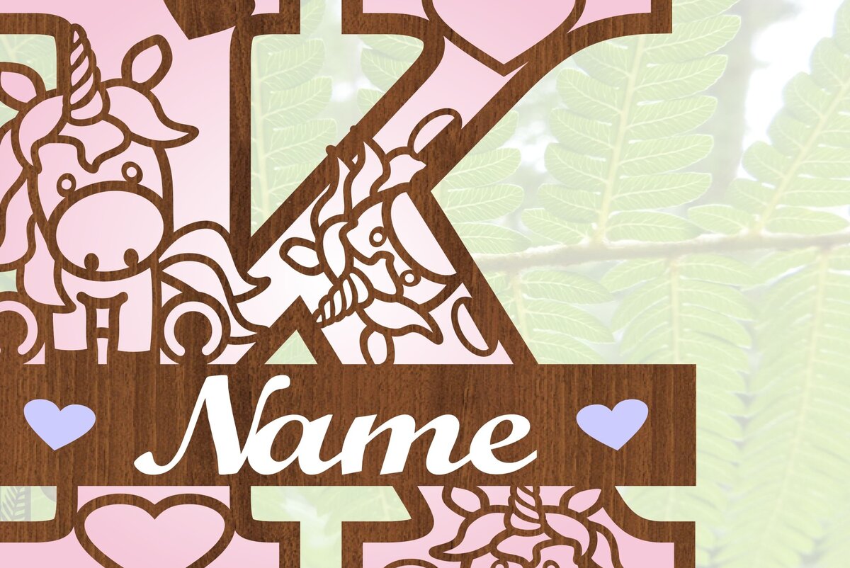 Intra απο ξύλο plywood 3mm-4mm πάχος – Μονόκερος Μονόγραμμα Letter K Δίασταση 20×20 cm INTRAFABR-70818671