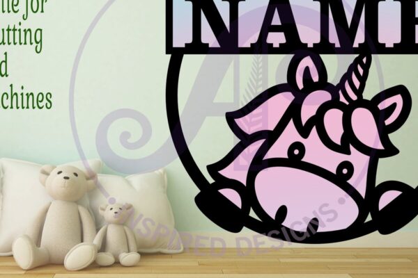 Intra απο ξύλο plywood 3mm-4mm πάχος – Μονόκερος που κρυφοκοιτάζει το όνομα Cut Laser Δίασταση 20×20 cm INTRAFABR-96173979