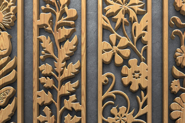 Intra απο ξύλο plywood 3mm-4mm πάχος – Μοτίβα κοπής με λουλούδια λωρίδες με λέιζερ Δίασταση 3200×7200 cm INTRAFABR-124783745