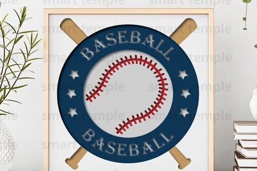 Intra απο ξύλο plywood 3mm-4mm πάχος Μπέιζμπολ 3d Shadowbox, διάνυσμα μπέιζμπολ Δίασταση 30×20 cm INTRAFABR-80232631