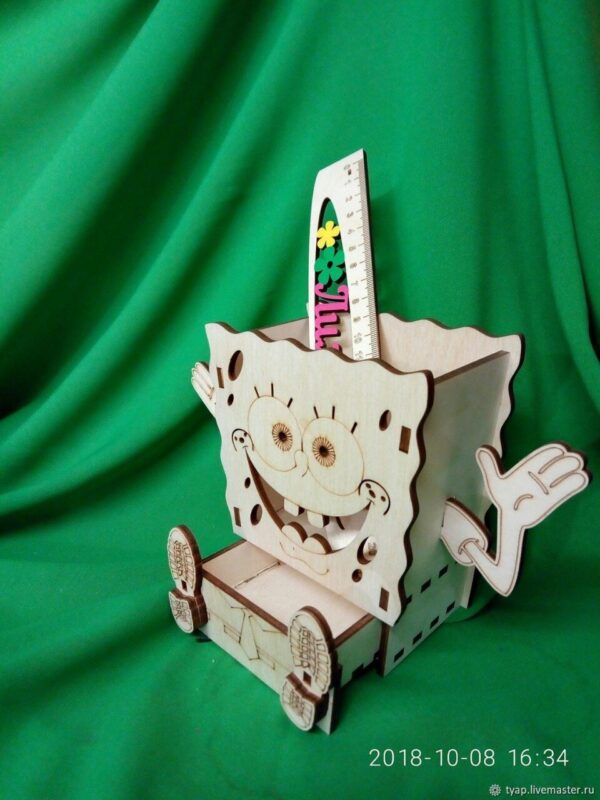 Intra απο ξύλο plywood 3mm-4mm πάχος – Μπομπ Σφουγγαράκης Μολυβοθήκη με Συρτάρι Δίασταση 30×30 cm Intraeaxys-pok3ddj7
