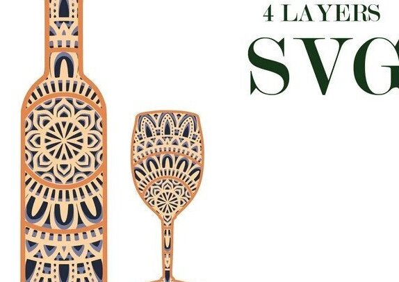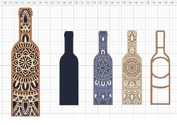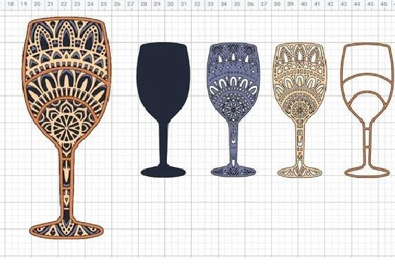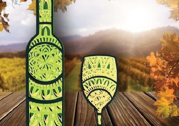 Intra απο ξύλο plywood 3mm-4mm πάχος – Μπουκάλι και ποτήρι κρασιού, Μάνταλα, Δίασταση 20×20 cm INTRAFABR-31750899