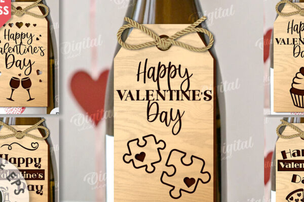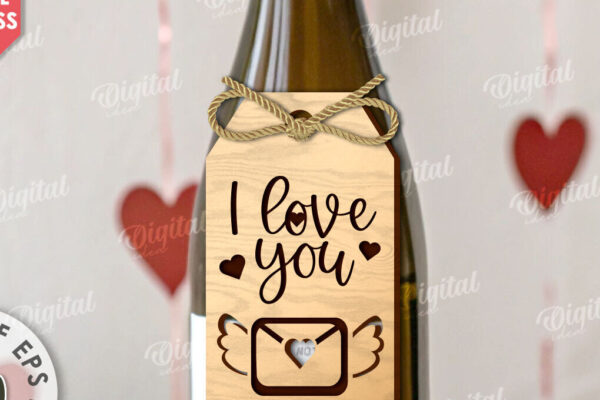 Intra απο ξύλο plywood 3mm-4mm πάχος – Μπουκάλι κρασιού Αγίου Βαλεντίνου Ετικέτες Πακέτο Δίασταση 20×20 cm INTRAFABR-111598749
