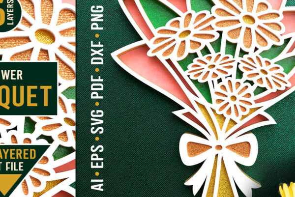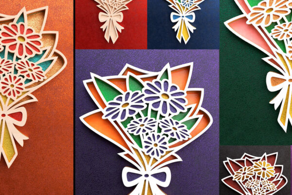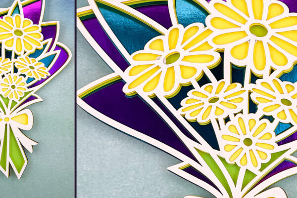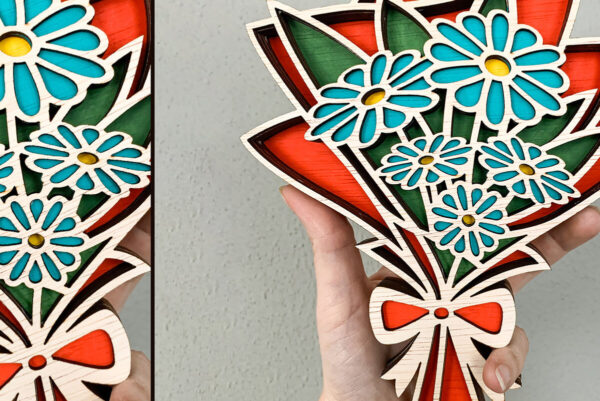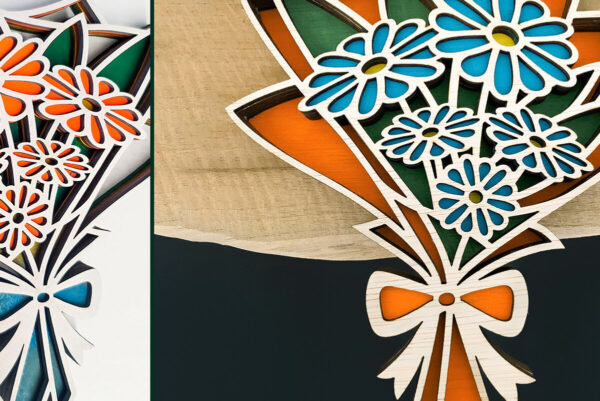 Intra απο ξύλο plywood Χρώμα wenge 3mm-4mm πάχος – Μπουκέτο λουλουδιών 3D Layered Cut Δίασταση 20×25 cm INTRAFABR-120864638