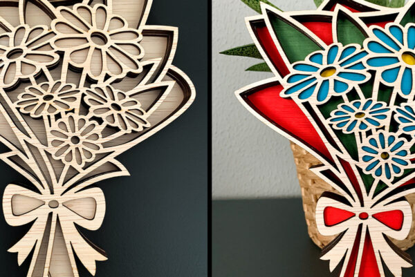Μπουκέτο λουλουδιών 3D Layered Cut Πρόκειται για ψηφιακό σχεδίου, ιδανικό για κοπή με ή plotter. Κατασκευασμένο απο Ξύλο από plywood [3mm ή 4mm], κομμένο με ακρίβεια στην βιοτεχνία Intrahome . Το φυσικό ξύλο προσφέρει μια κομψή, αυθεντική υφή και μπορεί εύκολα να βαφτεί ή να διακοσμηθεί σύμφωνα με το προσωπικό σας γούστο. Ελληνική παραγωγή – Κατασκευάζεται στην Ελλάδα με προσοχή στη λεπτομέρεια και υψηλές προδιαγραφές ποιότητας. ✔️ Υλικό: Plywood υψηλής ποιότητας ✔️ Διατίθεται σε πάχος 3mm ή 4mm ✔️ Ελαφρύ, ανθεκτικό και εύκολο στη χρήση ✔️ Ιδανικό για βάψιμο, χάραξη, κόλληση και χειροτεχνίες ✔️ Κατάλληλο για μπομπονιέρες, διακόσμηση, δώρα και DIY projects ✅ Εγγύηση 2 ετών – Σε περίπτωση σπασίματος, η αντικατάσταση γίνεται άμεσα, χάρη στην τοπική ελληνική παραγωγή μας. Ιδανικό για δημιουργικούς ανθρώπους που αγαπούν το DIY. Μπορεί να γίνει ξεχωριστό δώρο με προσωπικό χαρακτήρα. Φέρνει “χειροποίητη” αισθητική στη διακόσμηση. -files- Ελληνική χειροποίητη παραγωγή → στηρίζετε τοπικούς δημιουργούς. Κάθε κομμάτι έχει τη δική του φυσική ξύλινη υφή (μοναδικότητα). Δυνατότητα ειδικής παραγγελίας (άλλα μεγέθη / σχήματα). Άμεση ανταπόκριση & υποστήριξη. Εγγύηση αντικατάστασης (ήδη το έχεις). Μπορεί να μετατραπεί σε προσωποποιημένο αντικείμενο με χάραξη ή χρώμα. -files– Μη τοξικό υλικό → ασφαλές για παιδιά (με επίβλεψη). Ελαφρύ και εύκολο στη μεταφορά. Συσκευάζεται με προστασία για να φτάνει πάντα άθικτο. -files–files- Ιδανικό για event planners, καταστήματα ειδών δώρου, κατασκευαστές . Διατίθεται σε χονδρική με ειδικές τιμές & εκπτώσεις σε ποσότητα. Ανοιχτές Αποχρώσεις