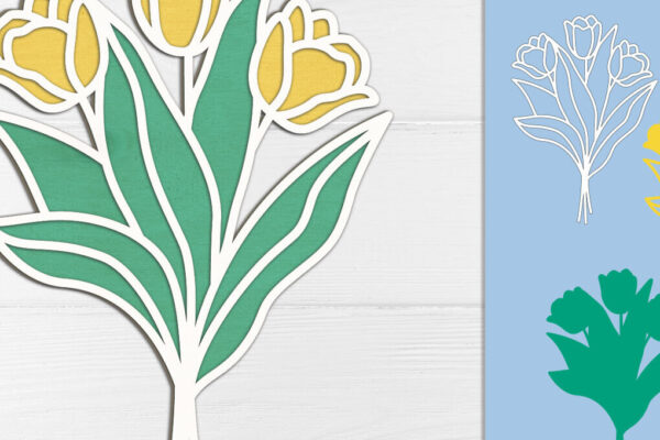 Intra απο ξύλο plywood 3mm-4mm πάχος – Μπουκέτο λουλούδια τουλίπας Ξύλινο κομμένο με λέιζερ Δίασταση 20×20 cm INTRAFABR-117883870