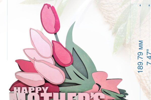 Intra απο ξύλο plywood 3mm-4mm πάχος – Μπουκέτο τουλίπα Mothers Day, Δίασταση 20×20 cm INTRAFABR-95123443