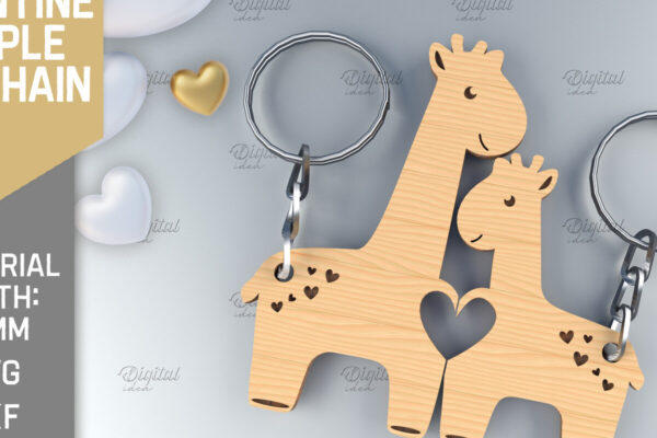 Intra απο ξύλο plywood 3mm-4mm πάχος – Μπρελόκ για ζευγάρια Αγίου Βαλεντίνου. Καμηλοπάρδαλη Δίασταση 5×5 cm INTRAFABR-84106516