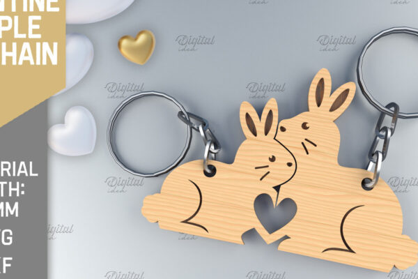 Intra απο ξύλο plywood 3mm-4mm πάχος – Μπρελόκ για ζευγάρια Αγίου Βαλεντίνου. Κουνέλια Δίασταση 5×5 cm INTRAFABR-84105625