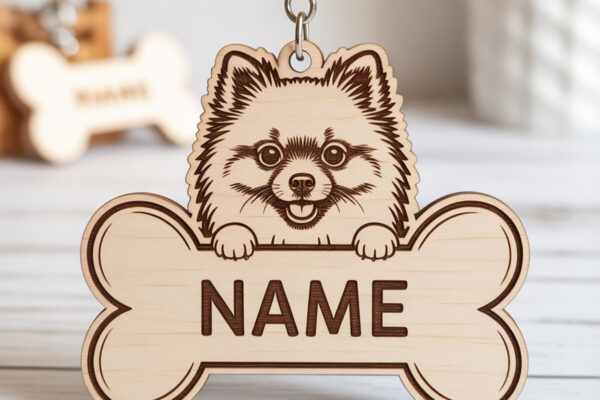 Intra απο ξύλο plywood 3mm-4mm πάχος – Μπρελόκ με ετικέτα ονόματος Pomeranian Bone Δίασταση 5×5 cm INTRAFABR-121423303