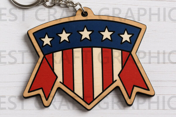 Intra απο ξύλο plywood 3mm-4mm πάχος – Μπρελόκ με κορδέλα USA Badge Δίασταση 5×5 cm INTRAFABR-122666331