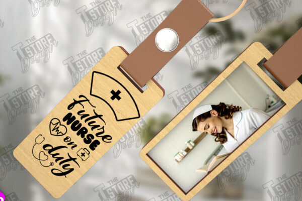 Intra απο ξύλο plywood 3mm-4mm πάχος – Μπρελόκ νοσοκόμας με δέσμη φωτογραφιών | CNC Δίασταση 5×5 cm INTRAFABR-111798960