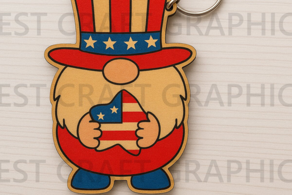 Intra απο ξύλο plywood 3mm-4mm πάχος – Μπρελόκ Patriotic Gnome Heart Δίασταση 5×5 cm INTRAFABR-122937479
