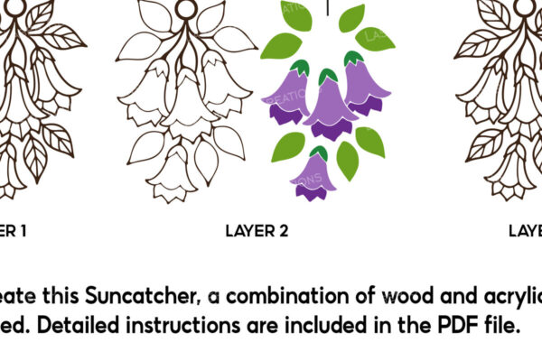Intra απο ξύλο plywood 3mm-4mm πάχος – Μωβ Bellflower Suncatcher Δίασταση 20×20 cm INTRAFABR-125248130