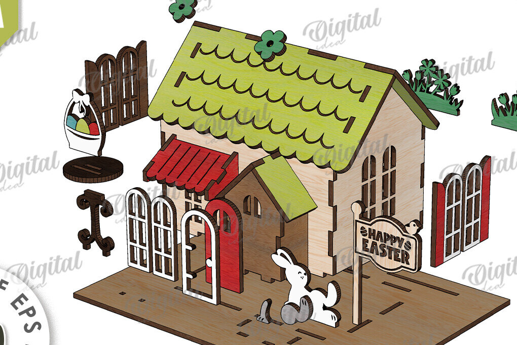 Intra απο ξύλο plywood 3mm-4mm πάχος – Ξύλινα Πασχαλινά Σπίτια LaserCut Bundle Δίασταση 20×20 cm INTRAFABR-116178091