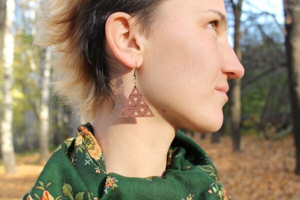 Intra απο ξύλο plywood 3mm-4mm πάχος – Ξύλινα σκουλαρίκια Sierpinski Triangle Fractal Δίασταση 3×3 cm Intraeaxys-p7yrm05o
