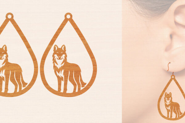 Intra απο ξύλο plywood 3mm-4mm πάχος – Ξύλινα σκουλαρίκια Wolf Δίασταση 5×5 cm INTRAFABR-99015240