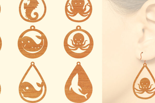 Intra απο ξύλο plywood 3mm-4mm πάχος – Ξύλινα σκουλαρίκια Sea Animal Δίασταση 5×5 cm INTRAFABR-66342970
