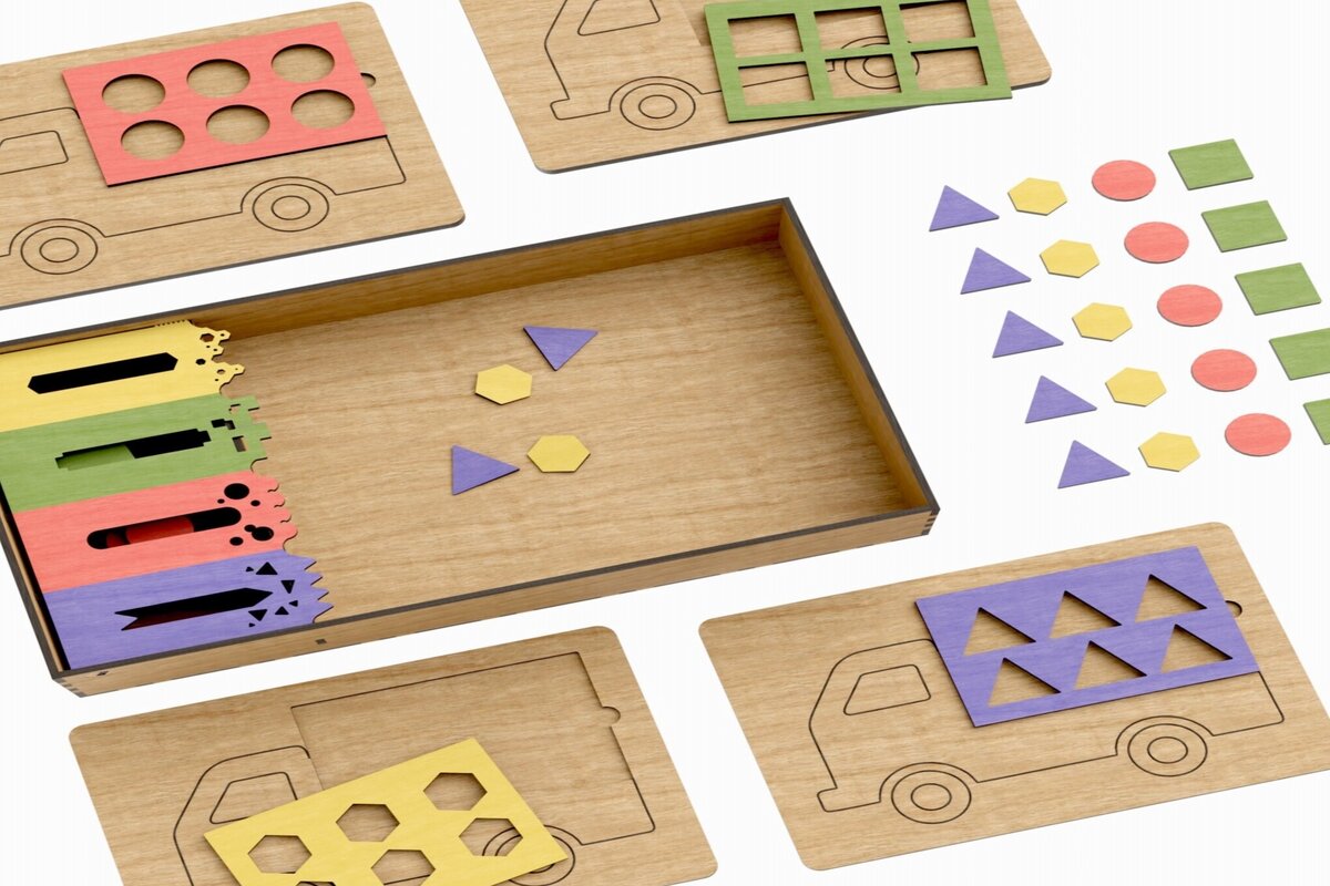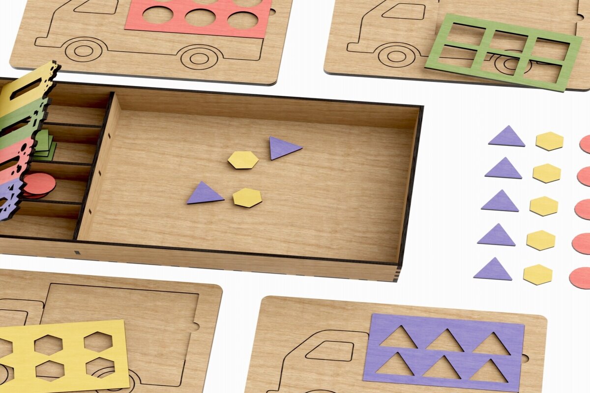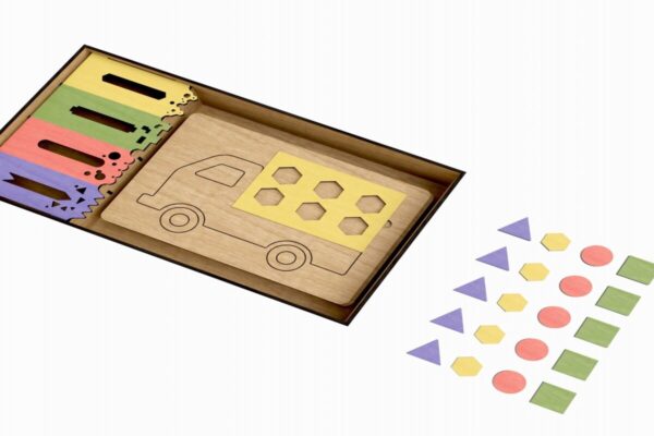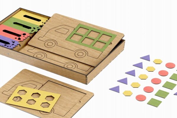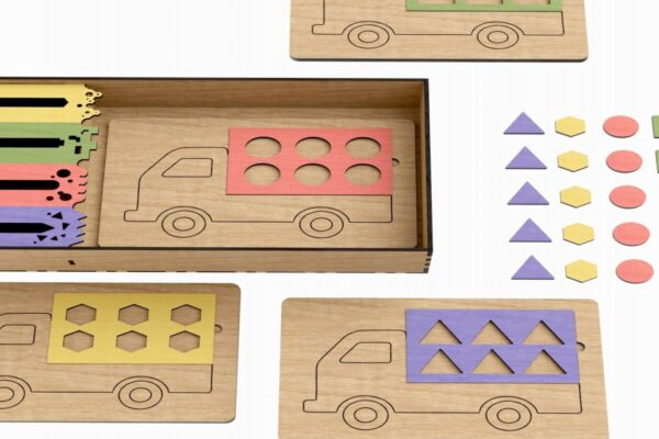 Intra απο ξύλο plywood 3mm-4mm πάχος – Ξύλινα φορτηγά παζλ, σχήματα, χρώματα Δίασταση 20×20 cm INTRAFABR-114210250