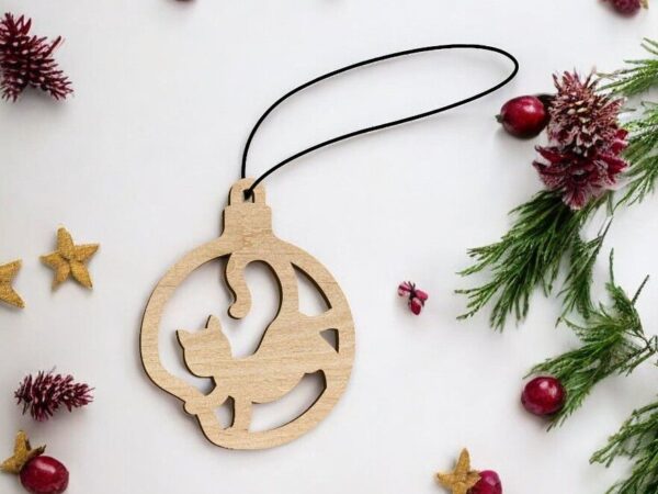 Intra απο ξύλο plywood 3mm-4mm πάχος – Ξύλινη διακόσμηση χριστουγεννιάτικου δέντρου γάτας 25×30 cm INTRAVECTRY-MY551799